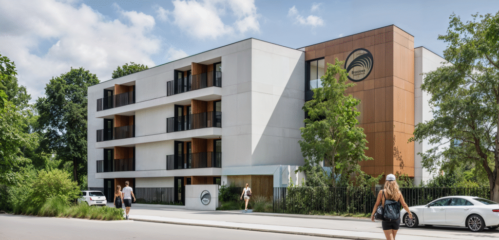 CR BRZOZOWA PARK to wyjątkowy projekt mieszkaniowy stworzony z myślą o maksymalnym komforcie i funkcjonalności. Budynek idealnie wpasowuje się w zielone otoczenie i oferuje 31 apartamentów o zróżnicowanych metrażach. Każde mieszkanie wyposażone jest w prywatny ogród lub przestronny taras – idealne miejsce do wypoczynku.